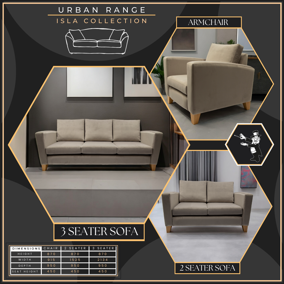 Introducing the exquisite Isla Chair, a testament to comfort, style, and versatility. Crafted to perfection, our Isla Chair epitomizes modern elegance and functionality, providing the ideal centrepiece for any contemporary living space. The plush cushions and ergonomic design offer unparalleled relaxation, making it the perfect spot for cozy movie nights, entertaining guests, or simply unwinding after a long day.