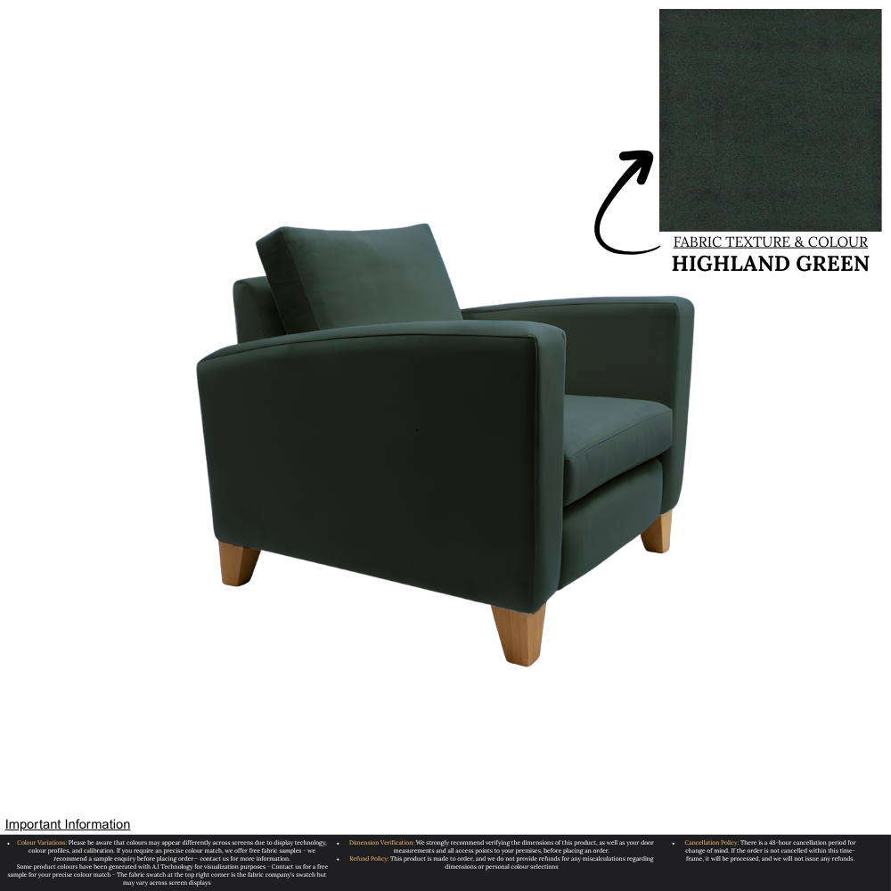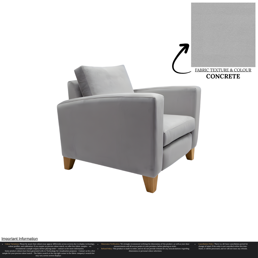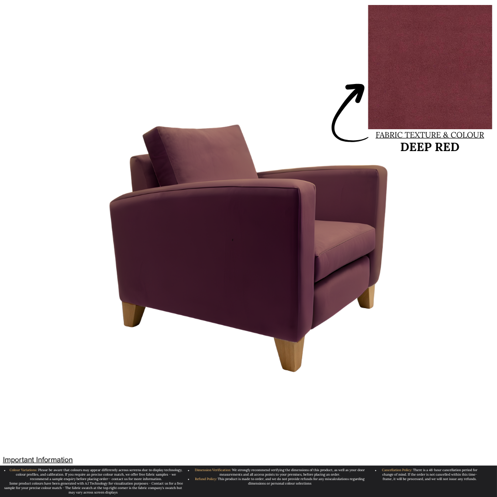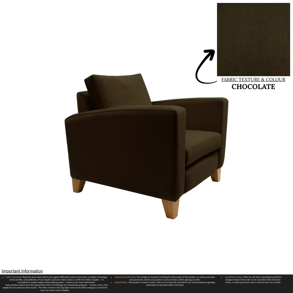 Uncompromising in quality, our Isla Armchair is meticulously manufactured, ensuring a perfect fit for any home. With over 30 stunning colour options available, you can effortlessly customize this chair to suit your unique interior design preferences. The rich texture and durability of the fabric guarantee long-lasting luxury, while the timeless aesthetic effortlessly complements a variety of decor styles.