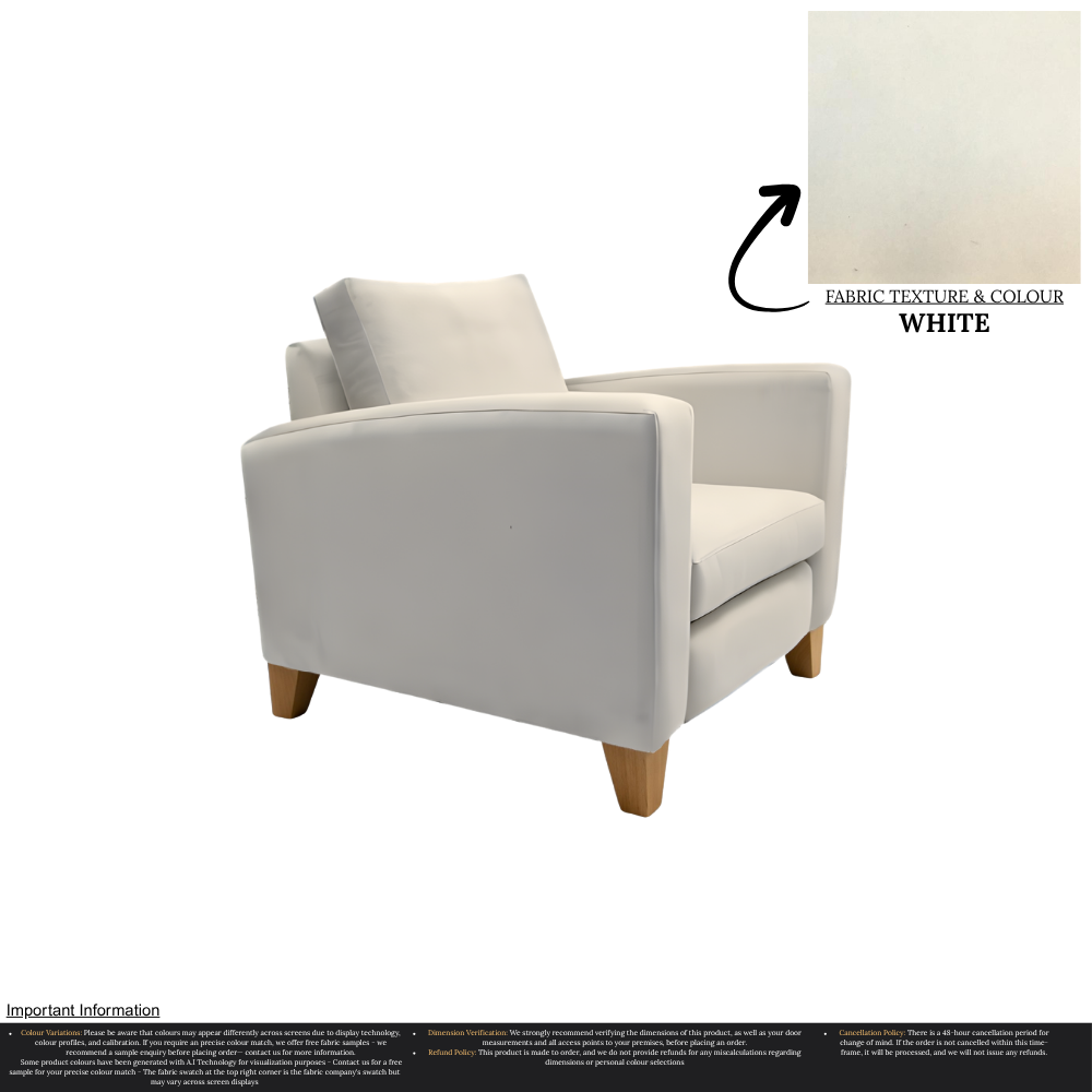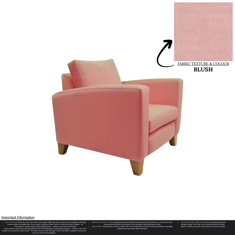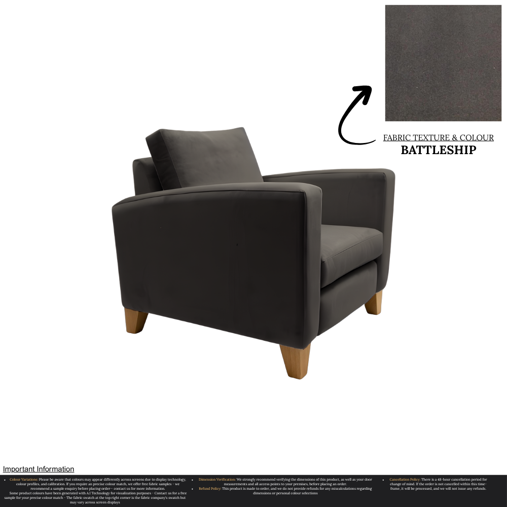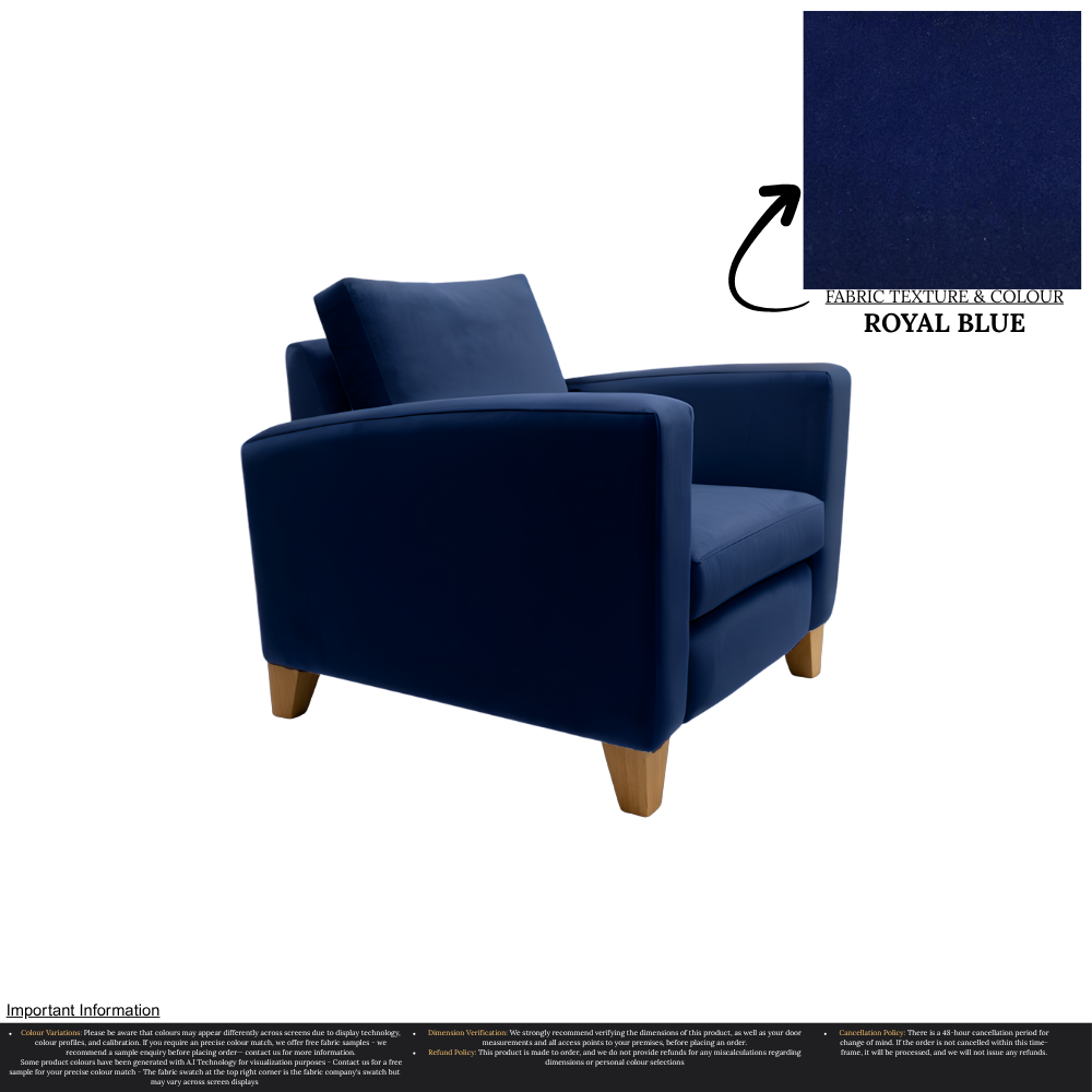 Uncompromising in quality, our Isla Armchair is meticulously manufactured, ensuring a perfect fit for any home. With over 30 stunning colour options available, you can effortlessly customize this chair to suit your unique interior design preferences. The rich texture and durability of the fabric guarantee long-lasting luxury, while the timeless aesthetic effortlessly complements a variety of decor styles.