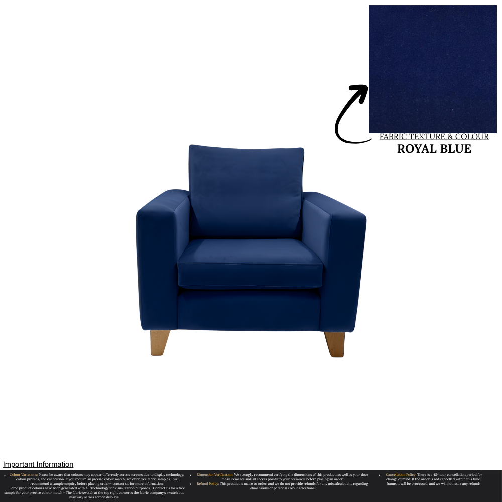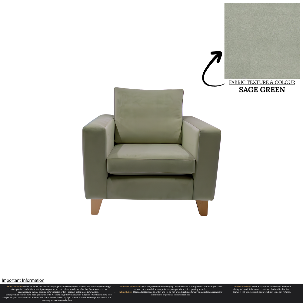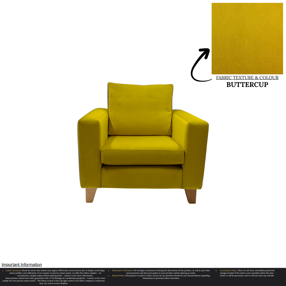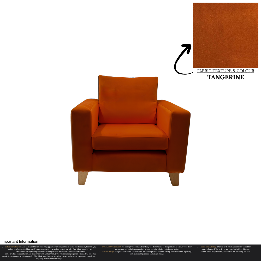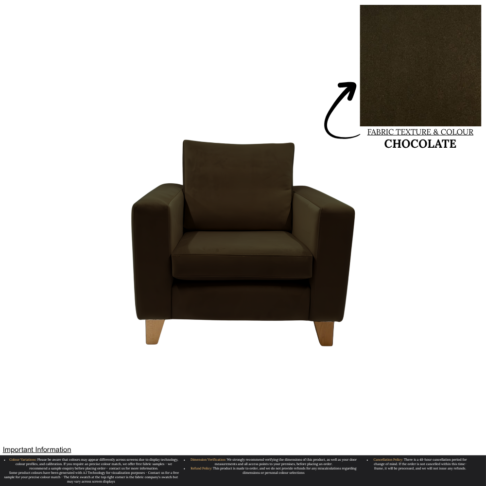 Uncompromising in quality, our Taye Armchair is meticulously manufactured, ensuring a perfect fit for any home. With over 30 stunning colour options available, you can effortlessly customize this chair to suit your unique interior design preferences. The rich texture and durability of the fabric guarantee long-lasting luxury, while the timeless aesthetic effortlessly complements a variety of decor styles.