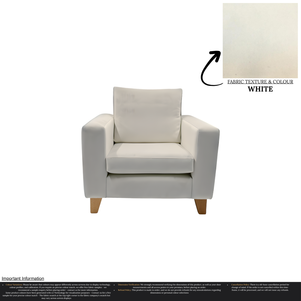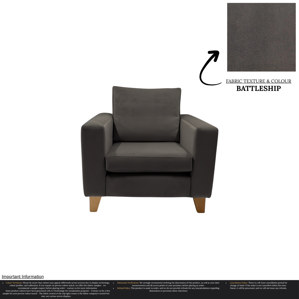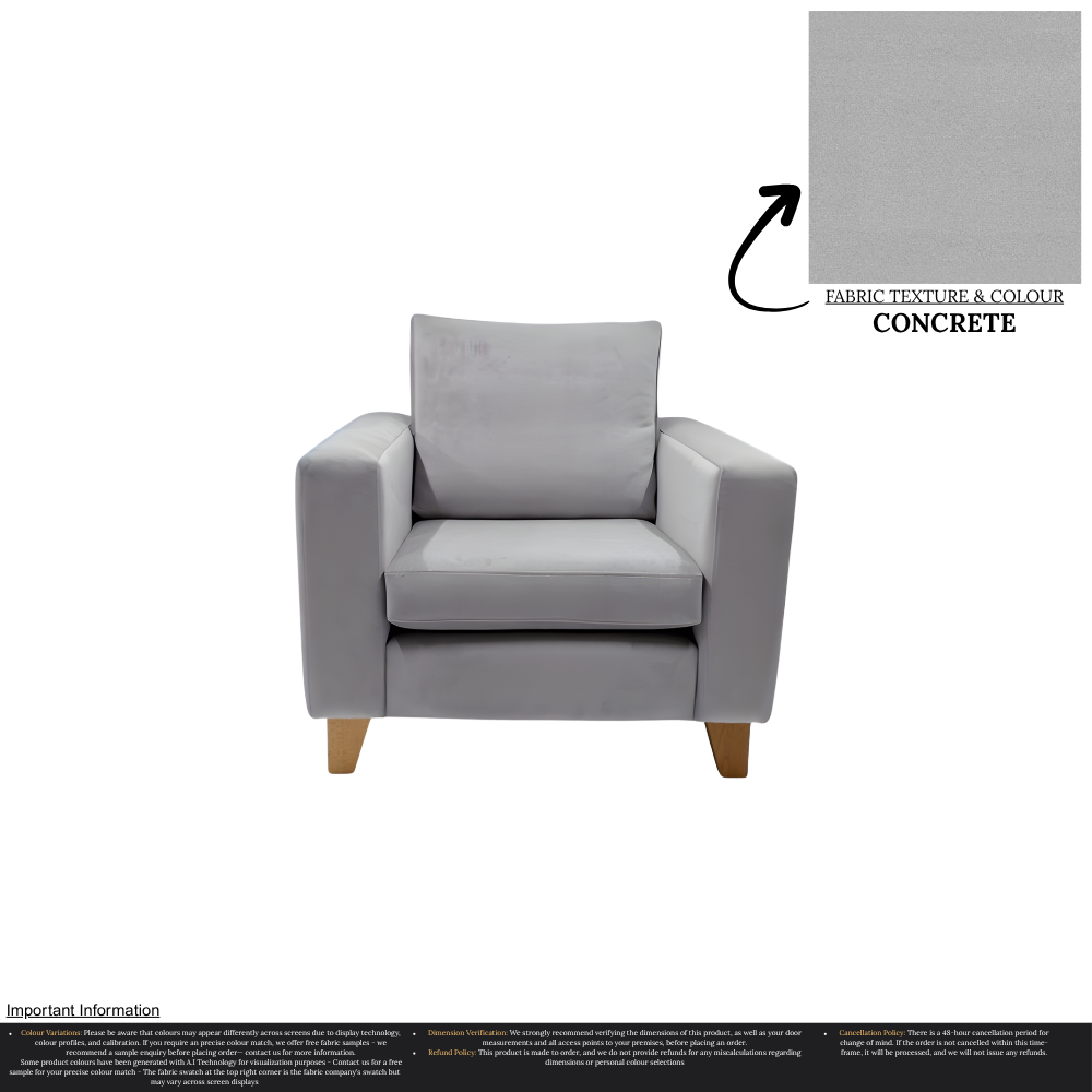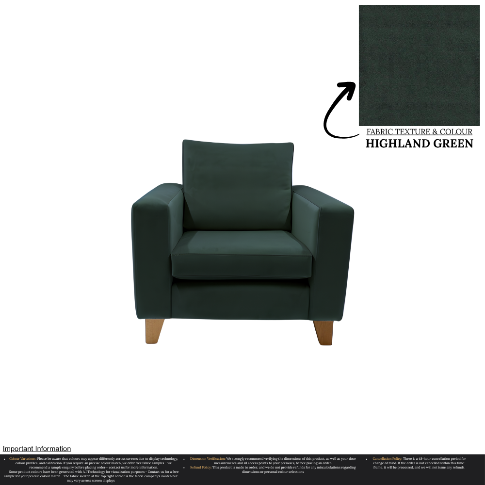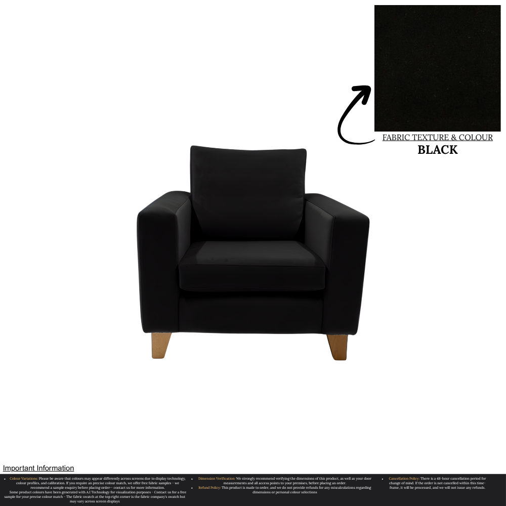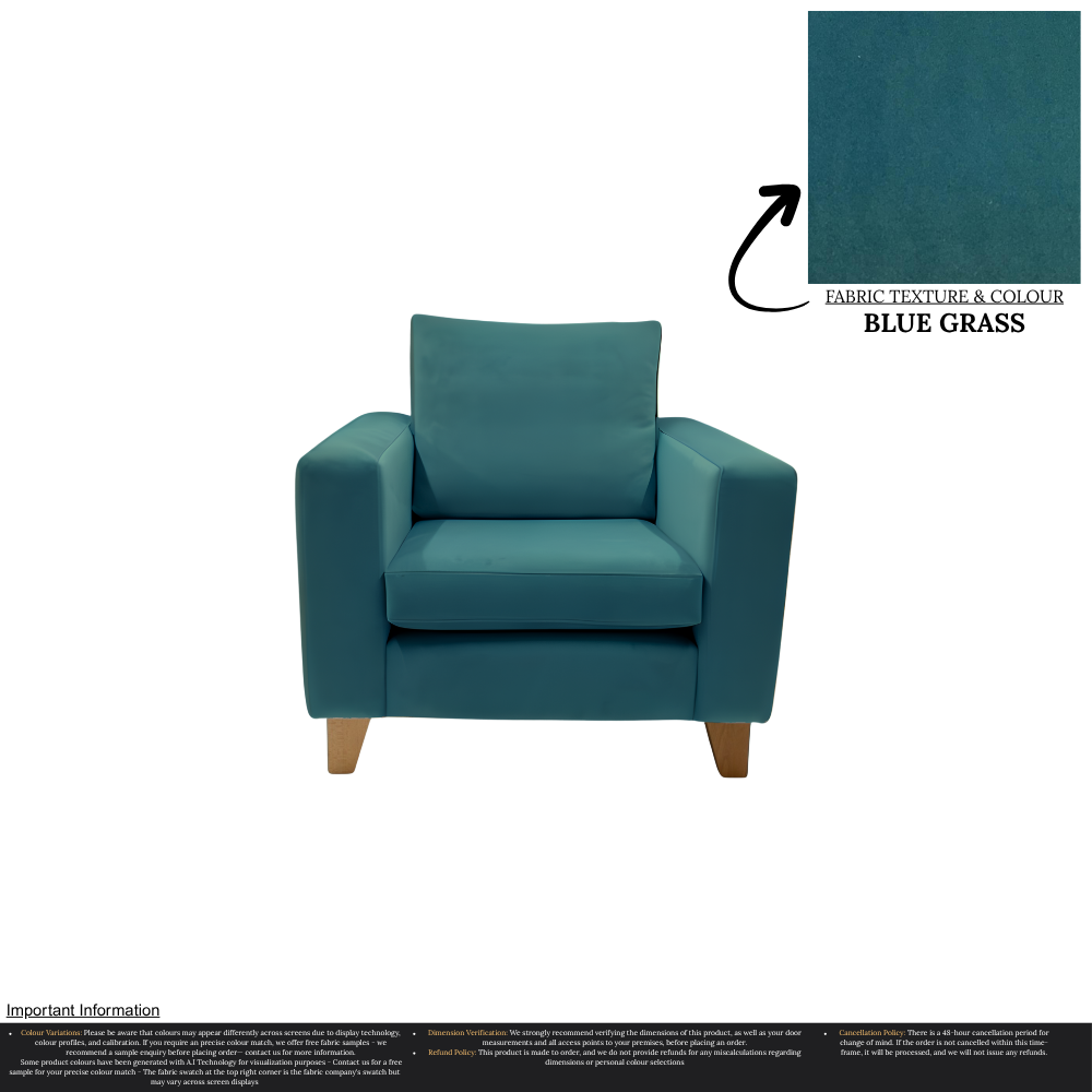 Uncompromising in quality, our Taye Armchair is meticulously manufactured, ensuring a perfect fit for any home. With over 30 stunning colour options available, you can effortlessly customize this chair to suit your unique interior design preferences. The rich texture and durability of the fabric guarantee long-lasting luxury, while the timeless aesthetic effortlessly complements a variety of decor styles.